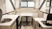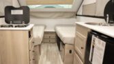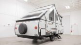 The Rockwood Hardside A213HS offers a unique blend of travel trailer durability and tent camper convenience. Its solid exterior walls provide added security and insulation, while the compact design makes it easy to tow and quick to set up. Designed for campers who value comfort and efficiency, this unit includes both a furnace and air conditioning, allowing for a comfortable camping experience in any season. The A213HS also features a built-in toilet and a spacious interior layout, delivering practical amenities without compromising on portability.